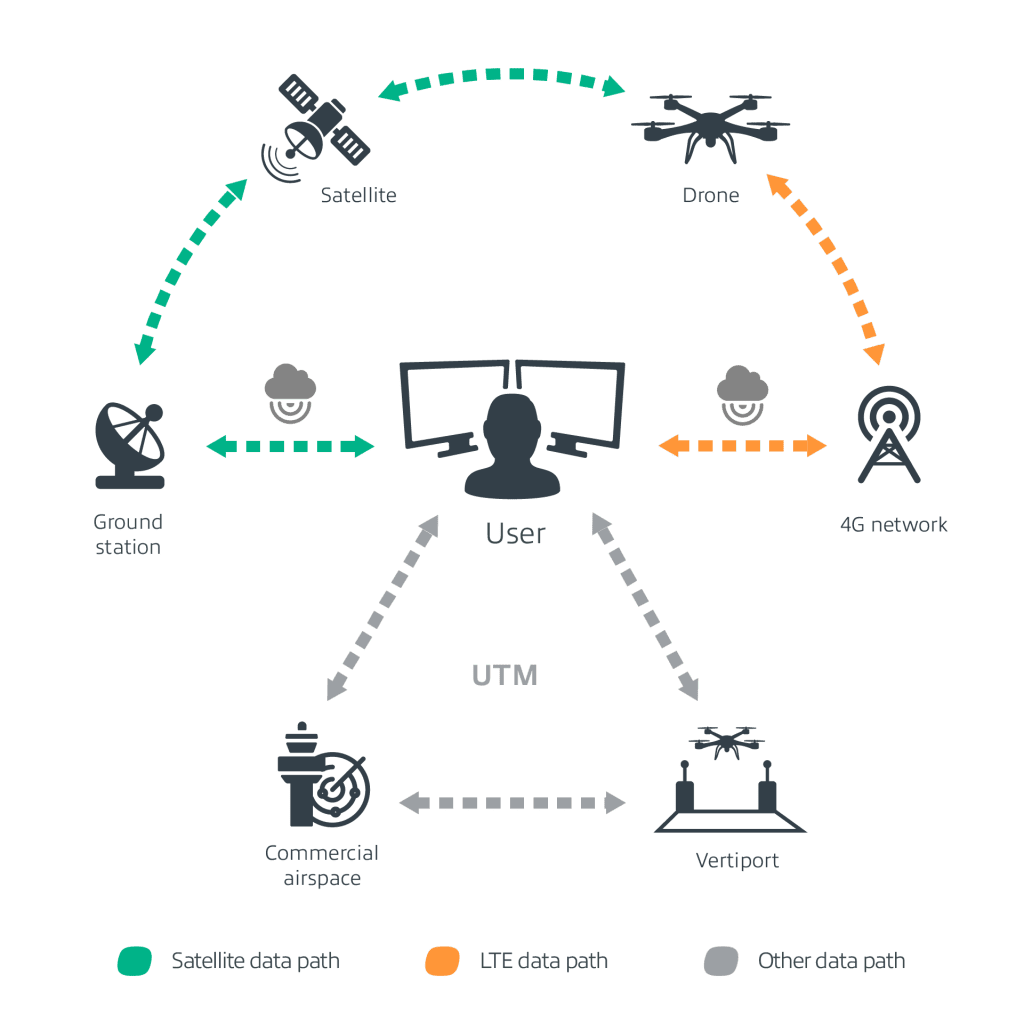 An always-available secure datalink between vehicles, remote operators and air traffic control. Enables operators to transmit critical Command and Control data, as well as payload data for telemetry, data services, voice and video streaming.